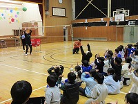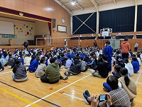 高橋さんは墨坂中学校区出身でバレーボールを始めたのは中学校の部活動からだそうです。幼少期からバレーボールを習っていたわけではないということから、「何かを始めるのに遅いということはない。そして、コツコツ毎日やる。継続してやることが大切。」など、貴重な話をたくさんお聞きすることができました。また、代表児童との交流試合もあり、体育館は割れんばかりの歓声に包まれました。高橋さんのお話から学んだことを大切に、これからを過ごしていきたいですね。